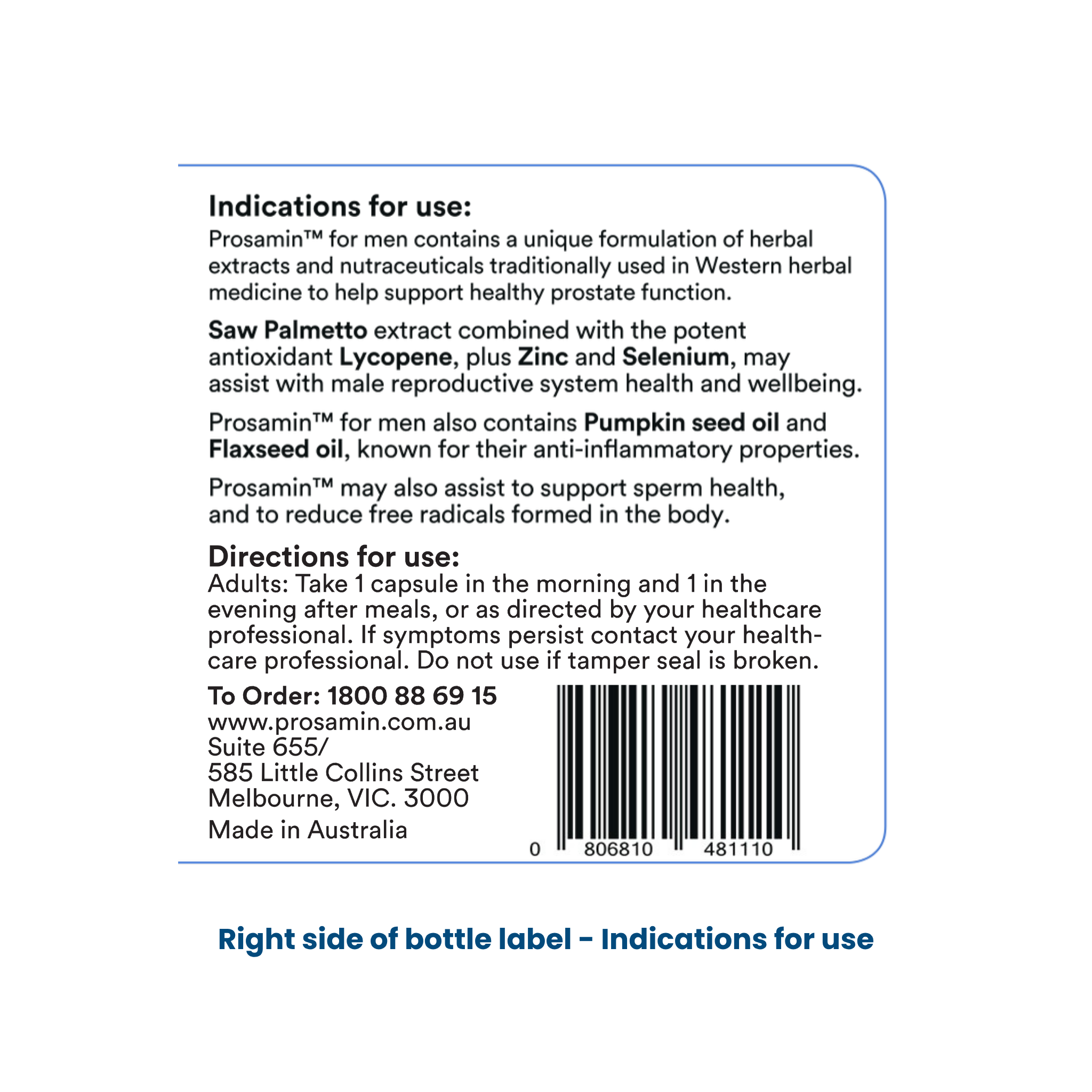 Prosamin™ High Strength formulation of clinically effective herbs and minerals proven to reduce symptoms of an enlarged prostate with regular treatment. Developed, licensed and manufactured in Australia.